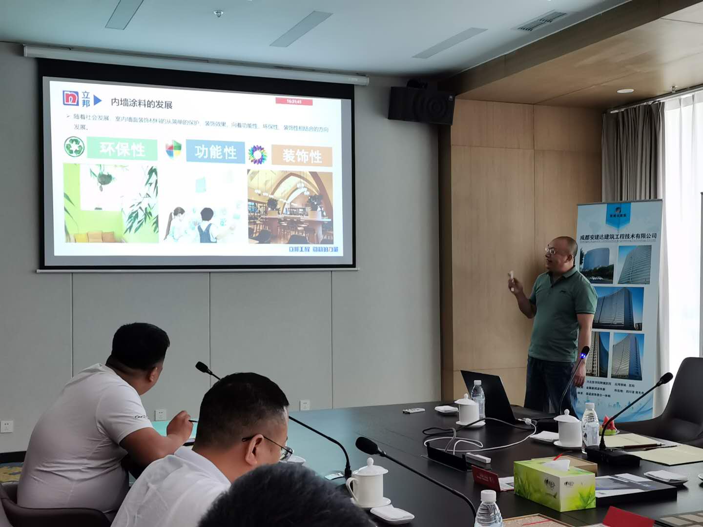 2020年6月5日下午,公司邀請西南建筑設(shè)計院、立邦涂料、生物城建設(shè)有限公司等方面領(lǐng)導(dǎo)及行業(yè)專家,共同就“科技新型墻材地材在現(xiàn)代建筑中的設(shè)計與應(yīng)用”為主題進(jìn)行了分享和深入交流。